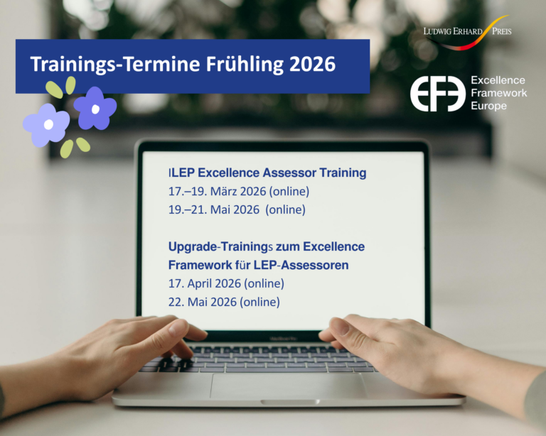 Mit besonderem Rückenwind startet die Initiative Ludwig-Erhard-Preis in das Frühjahr 2026: Im Jubiläumsjahr der ILEP stehen die bewährten Trainingsformate rund um das aktualisierte Excellence Framework Europe (EFE) auf dem Programm – praxisnah, fundiert und mit Blick auf nachhaltige Wirkung. Im Frühjahr 2026 stehen vier Online-Termine für zwei Weiterbildungsformate zur Auswahl – für Einsteiger:innen ebenso wie…